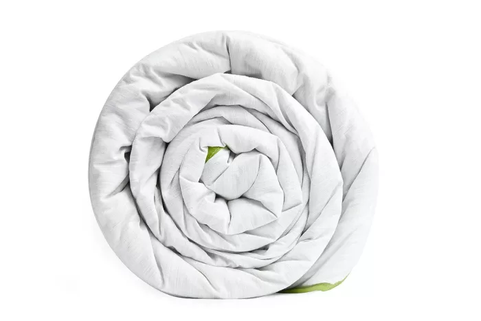 The outer material features a soft 97% cotton cover that feels luxurious against your skin — no extra duvet cover needed. Thanks to its longitudinal stitching, the blanket naturally contours to your body for enhanced comfort and even warmth distribution.